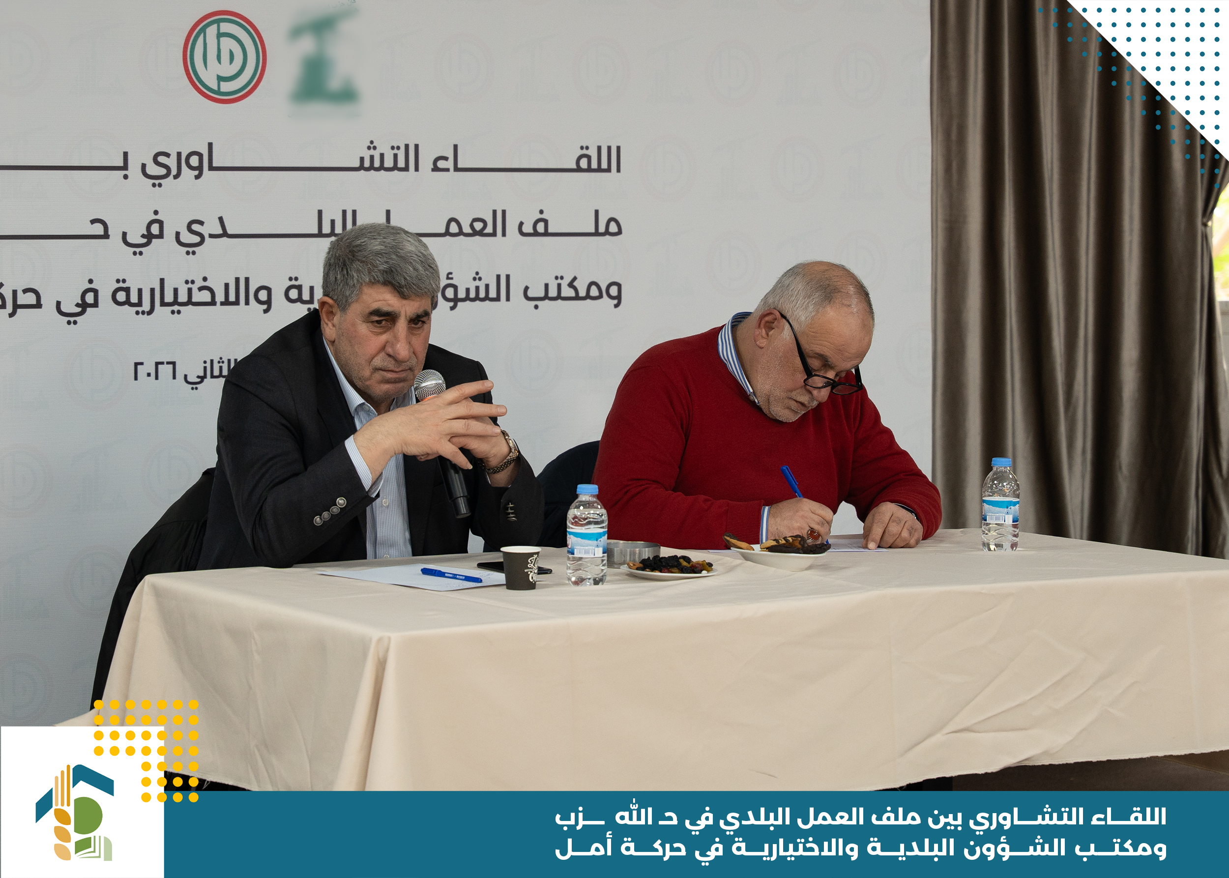 ضمن اللقاءات والاجتماعات الدورية بين مكتب الشؤون البلدية والاختيارية المركزي في حركة امل والعمل البلدي المركزي في حزب الله، عقد اجتماع بين المكتبيْن هو الأول للعام ٢٠٢٦ في مبنى العمل البلدي في حارة حريك.