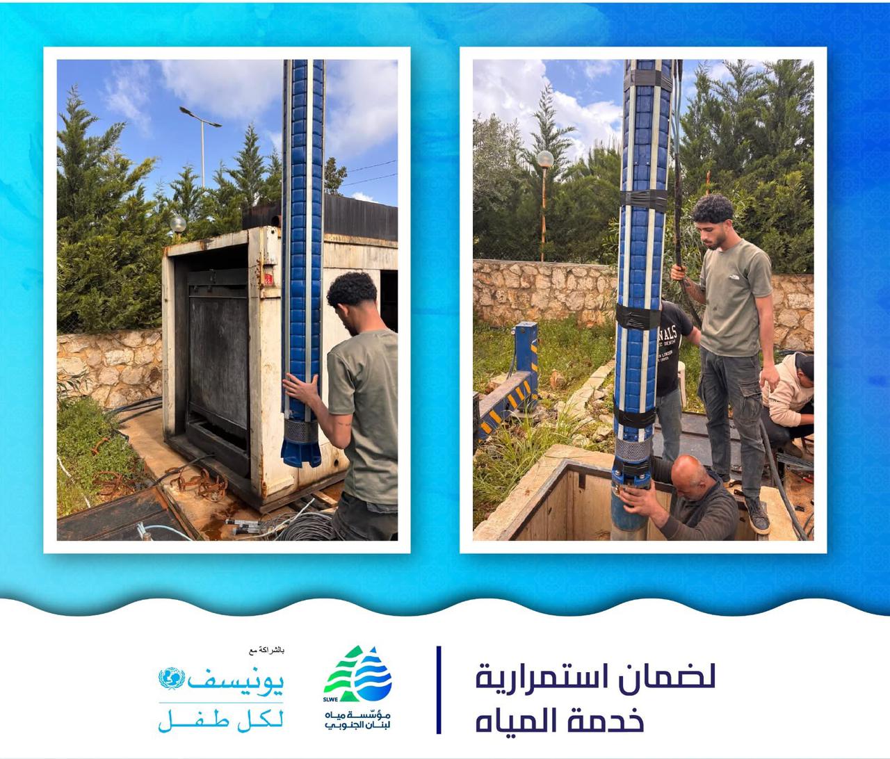 كما ركّبت المؤسسة مجموعة ضخ في بئر دير الزهراني رقم 3، بالتعاون مع منظمة اليونيسف، في إطار تعزيز استمرارية الخدمة.